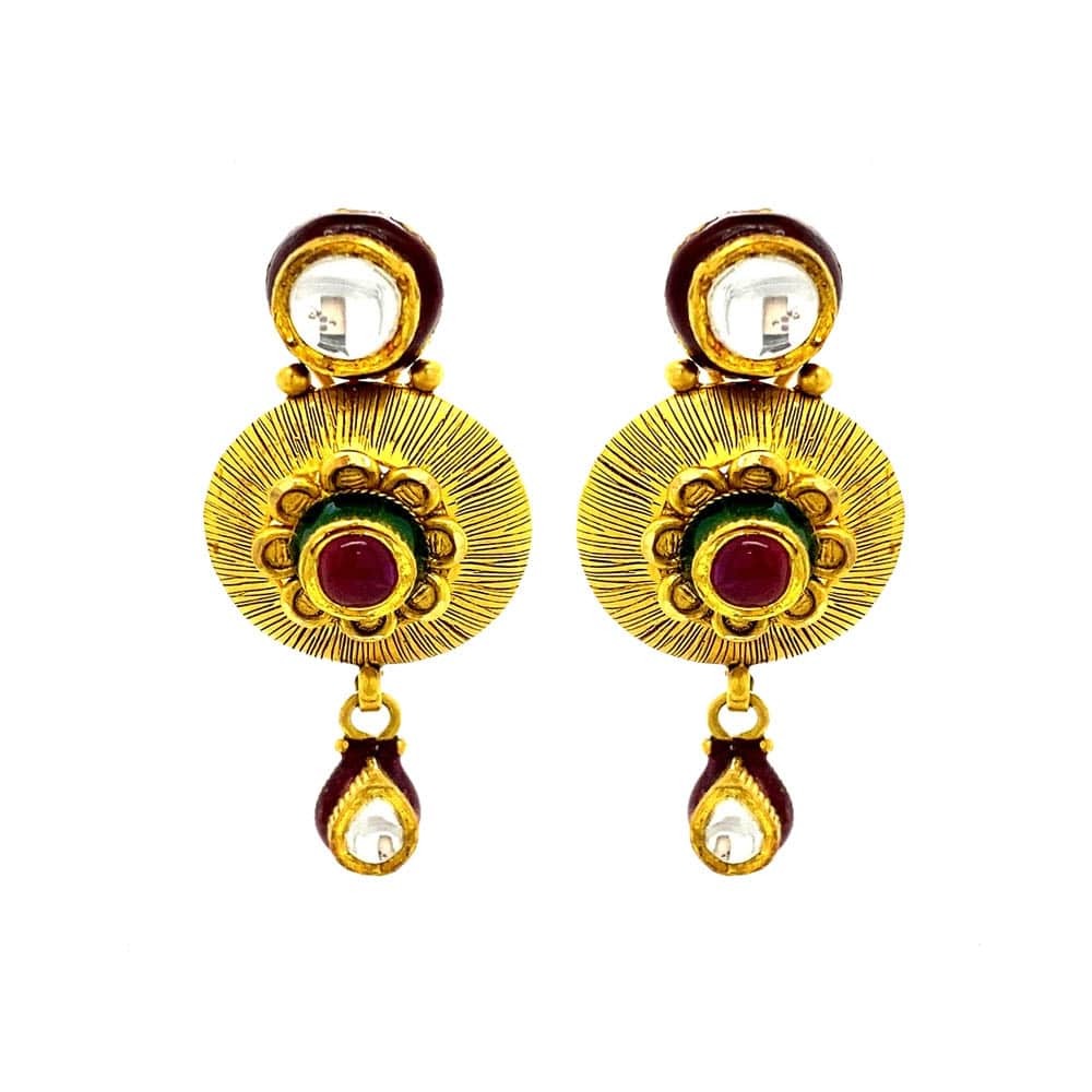 Ceremonial traditional yellow gold 22kt kundan earring- ATOP0007