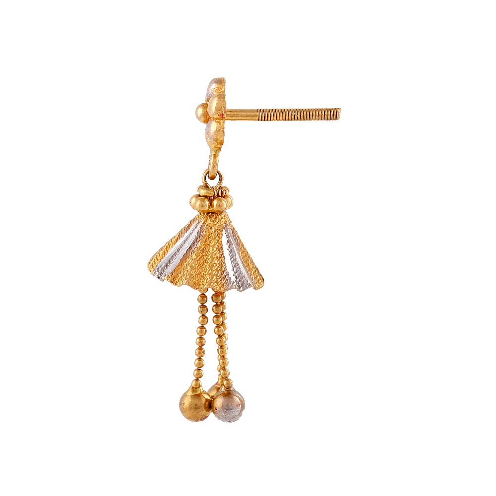 Glossy Sand Blast Finish Drop Jhumki Rhodhium Polish Gold Earring – TP9324
