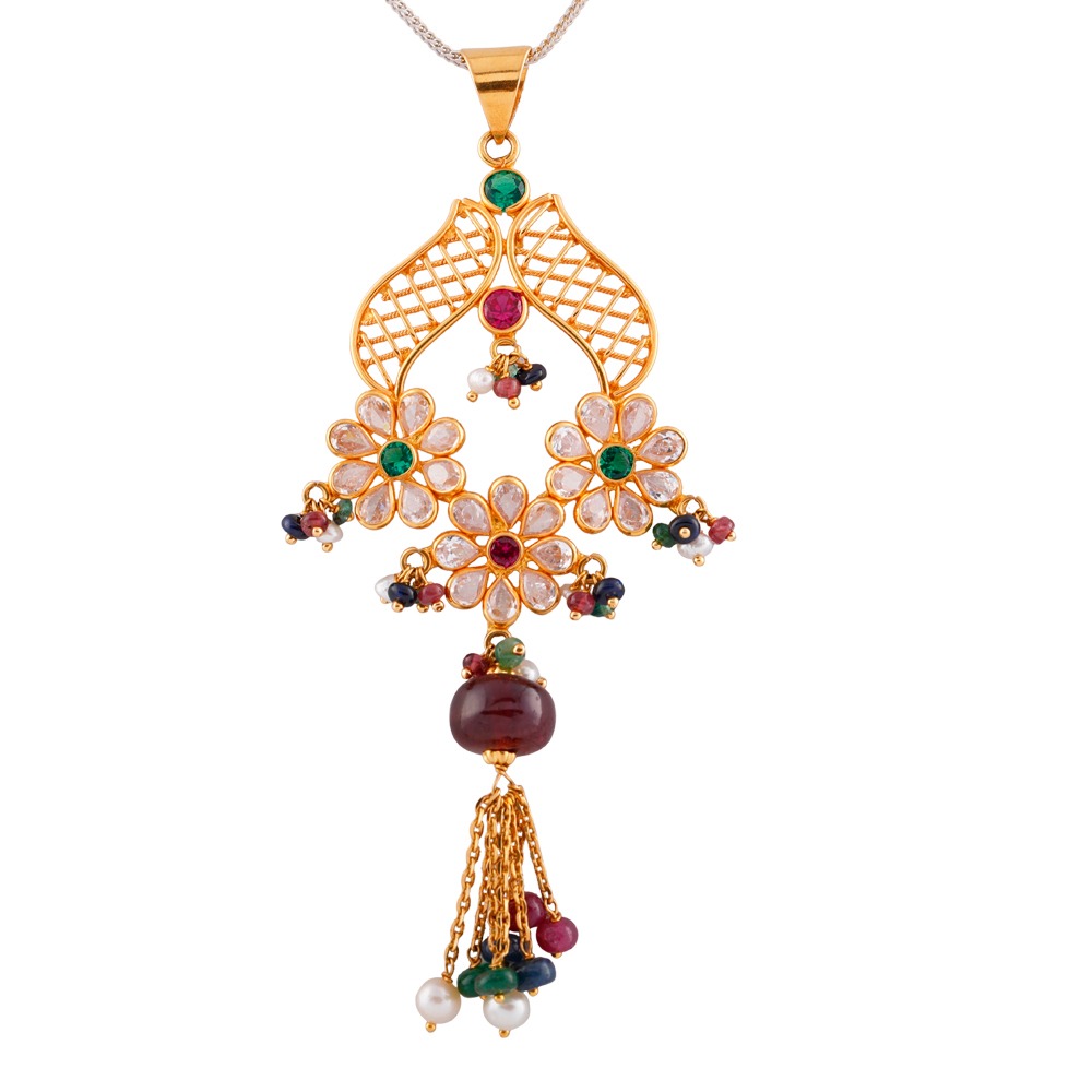 Glossy Filigree CZ Floral With Multicolour Beads Gold Pendant Set – FPS236
