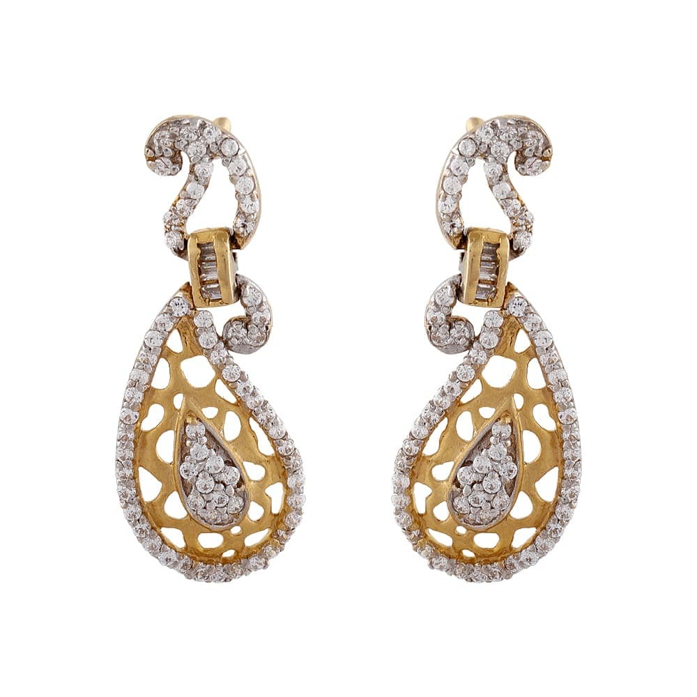 Glossy Glittering Baguette With Round CZ Curved Gold Earring – FT175