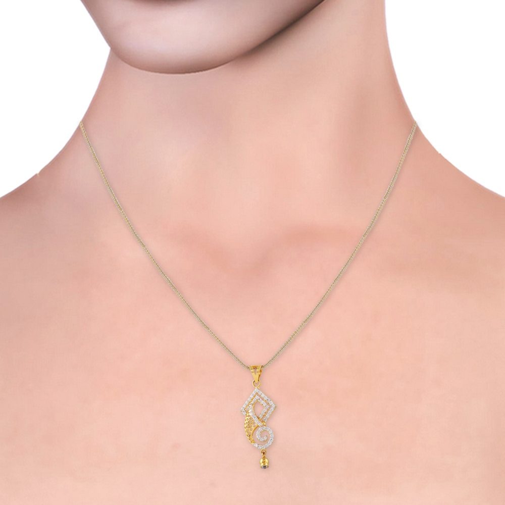 Glossy Glittering Heart Filigree CZ Studded Gold Pendant Set – FPS306