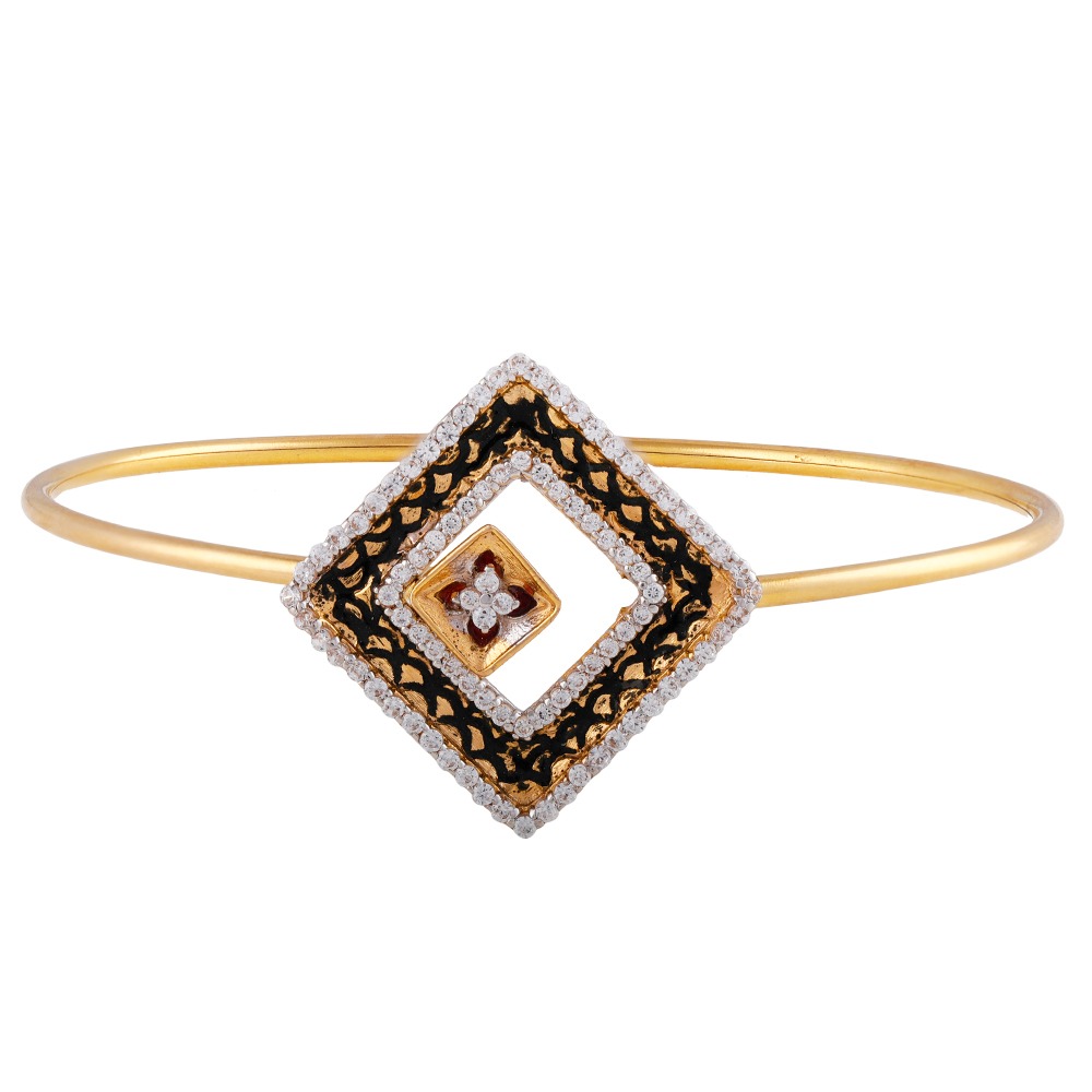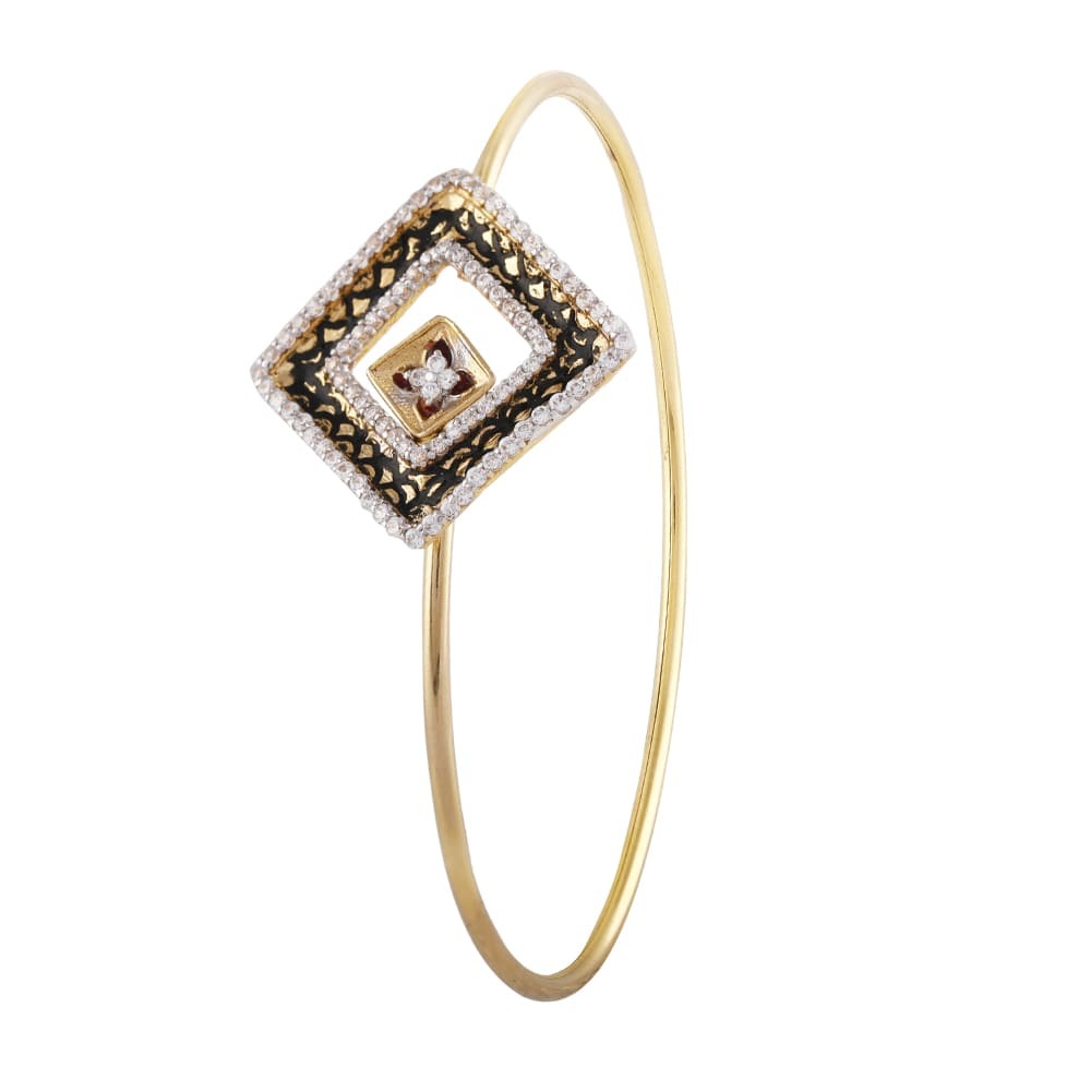 Glossy Oxidise Finish Floral Enamel CZ Studded Square Design Gold Bracelet – FBR50