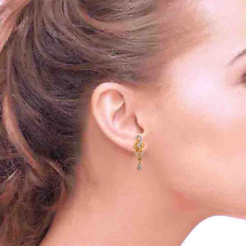Glossy Sparkling CZ Square Design Drop Gold Earring – FT398