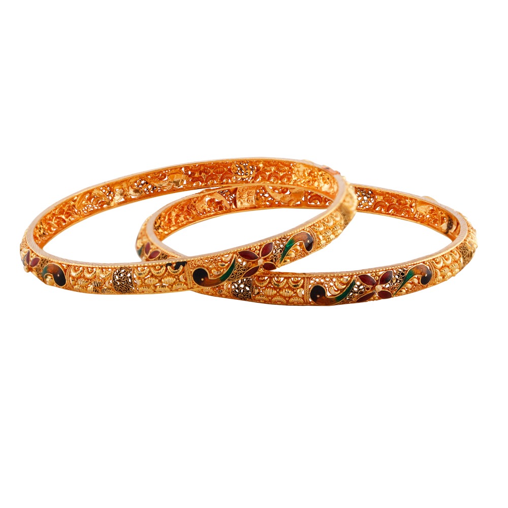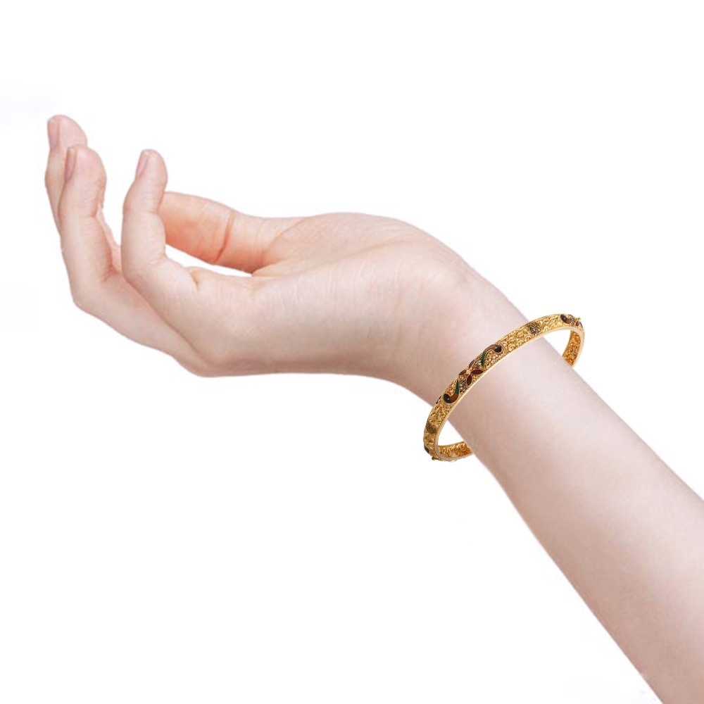 Matte Glossy Oxidise Finish Multicolour Enamel Filigree Gold Bangle – BG822